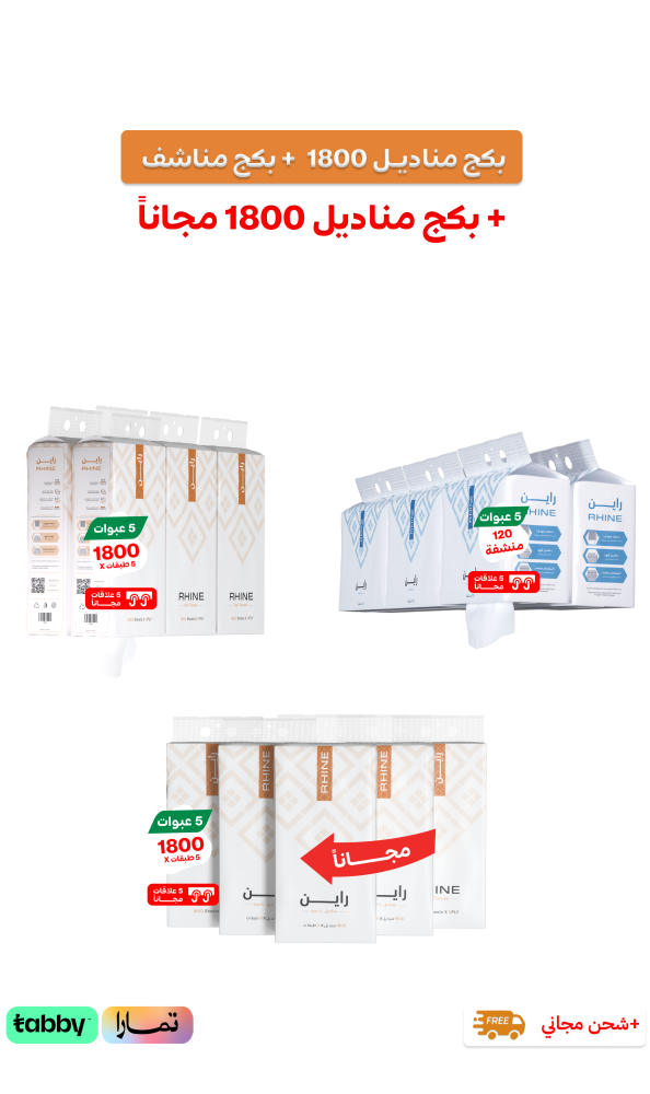 بكج مناديل 1800 + بكج مناشف + بكج 1800 مجانا