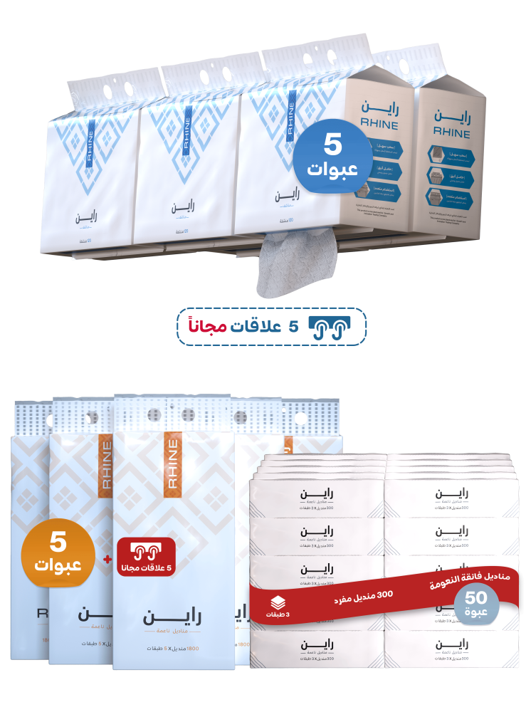 بكج مناديل راين 1800 الكبيرة 5 طبقات: