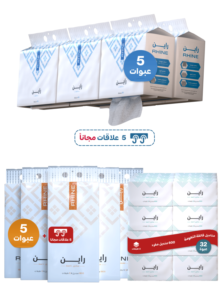 بكج مناديل راين 1800 الكبيرة 5 طبقات: